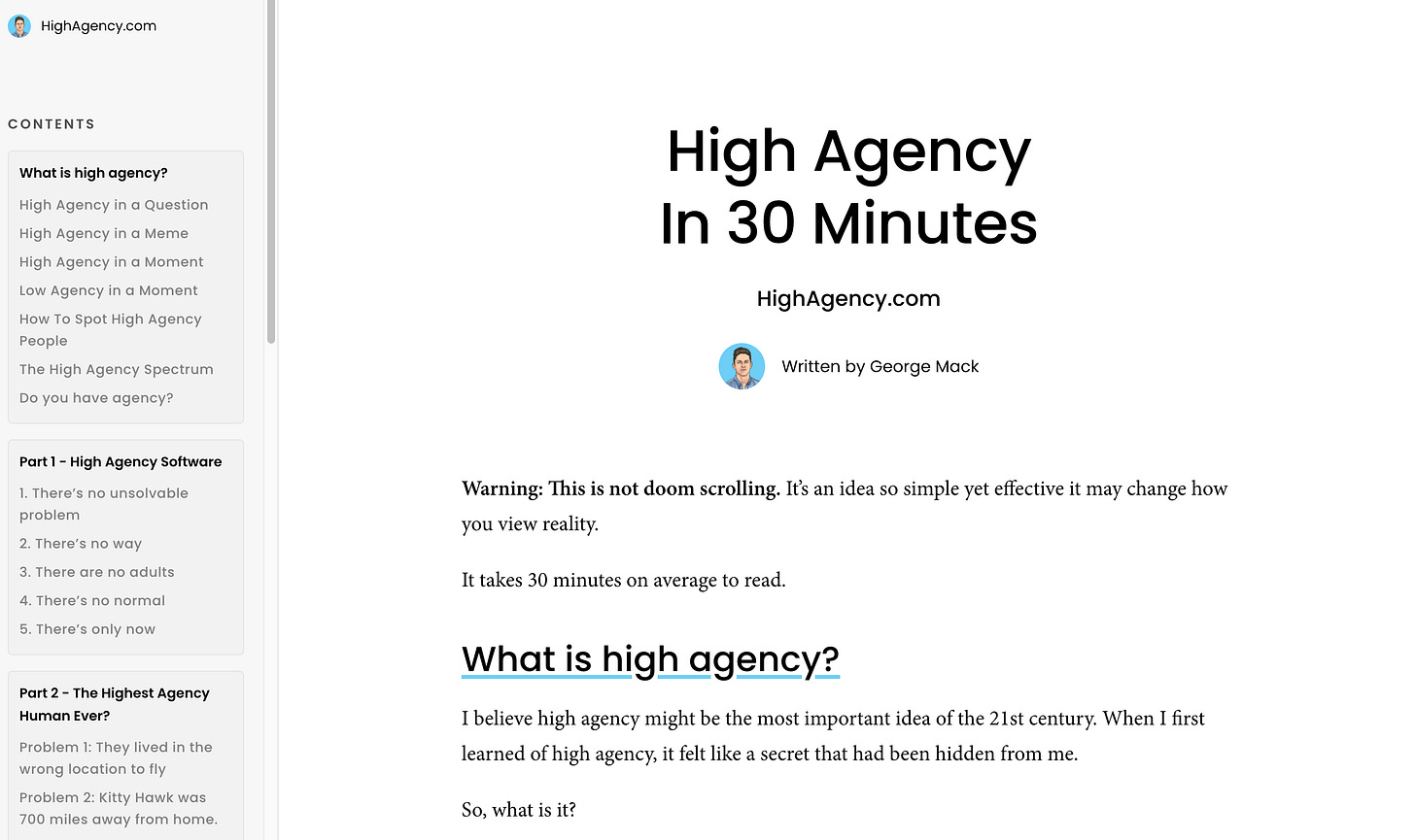 I recently came across the concept of high agency through George Mack's site, and it immediately resonated with me—not because the term was new, but because it finally gave shape to something I’ve long felt but hadn’t fully articulated. High agency is, in essence, the belief that you can affect change rather than passively accept the default. If something doesn’t exist, you create it. If the system is broken, you build a new one.